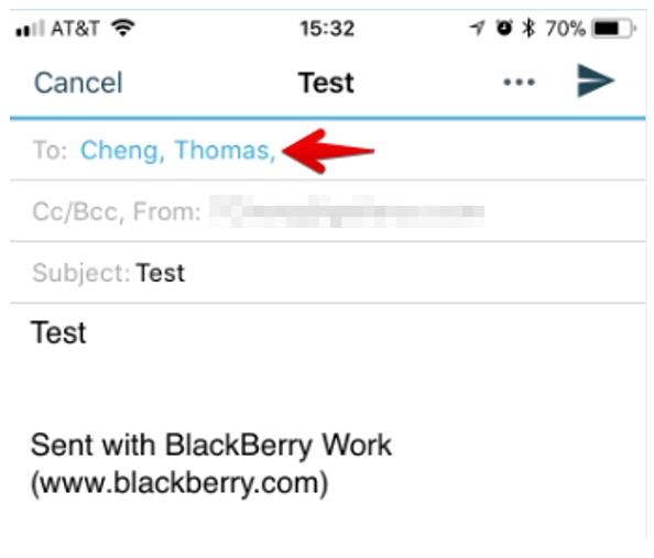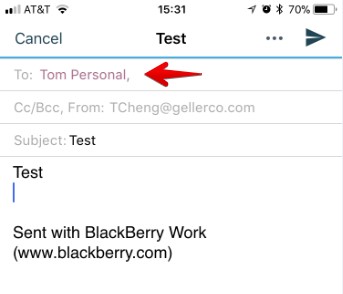 Once the profile applies to the device, try sending an email and you will notice email domain not listed within the profile earlier will be highlighted in red.
