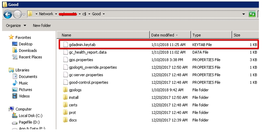 Now copy the gdadmin.keytab file created in the above over to the C:\good directory on each of your BlackBerry UEM server.