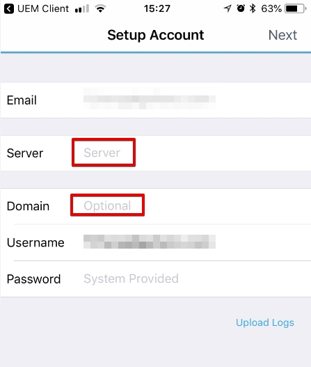 As a result, both the Server and Domain fields are not pre-filled at all.