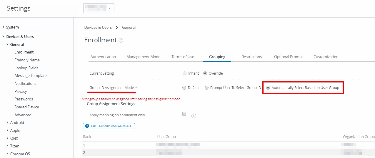 I forgot to mention that once the user logs into the device, it may end up enrolling in a different organization group (OG) based on user’s account and grouping setup.