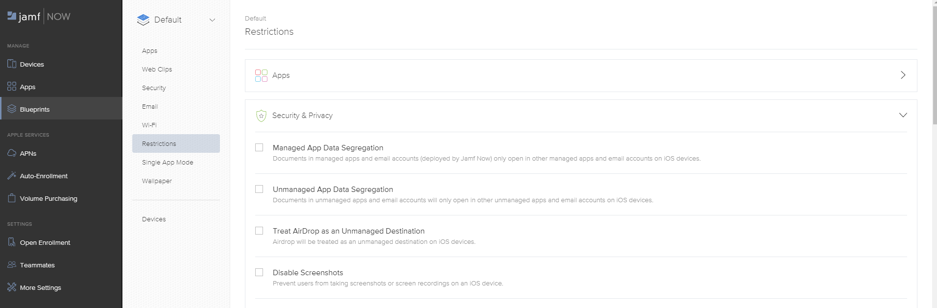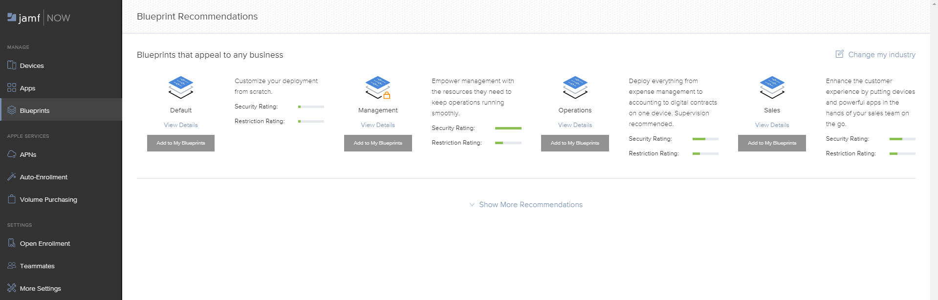 And similar to VMware Workspace ONE UEM, you can choose from a wide range of templates that suits your industry with Jamf Now.