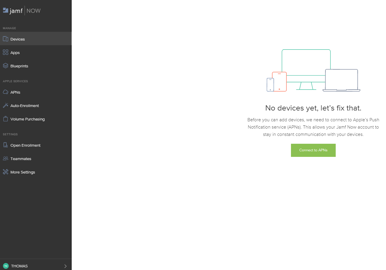 Upon logging into the console for the first time, I’m already guided to set up Apple’s Push Notification service (APNs) which is essential to manage any iOS devices. Apple Business Manager (ABM) and the Volume Purchase Program (VPP) are also available separately under APPLE SERVICES.