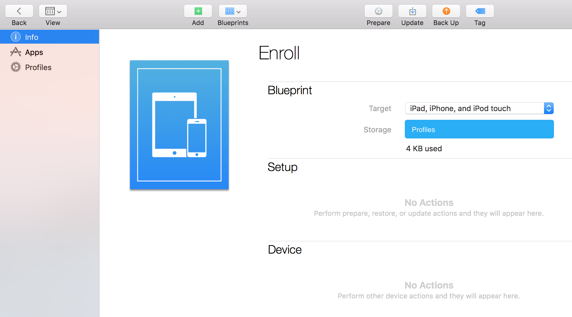 For the 2nd blueprint which we will rename as Enroll, do not click Prepare. Instead, import the device management profile (.mobileconfig file) which contains unique info about the MDM server, group ID and username to be assigned to the device. This is the additional step that’s not taken after adding the non-DEP device into Apple DEP in my first blog post on this subject.