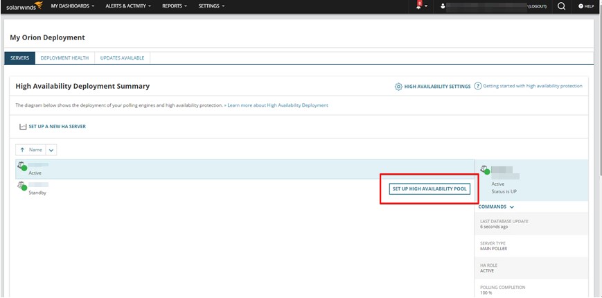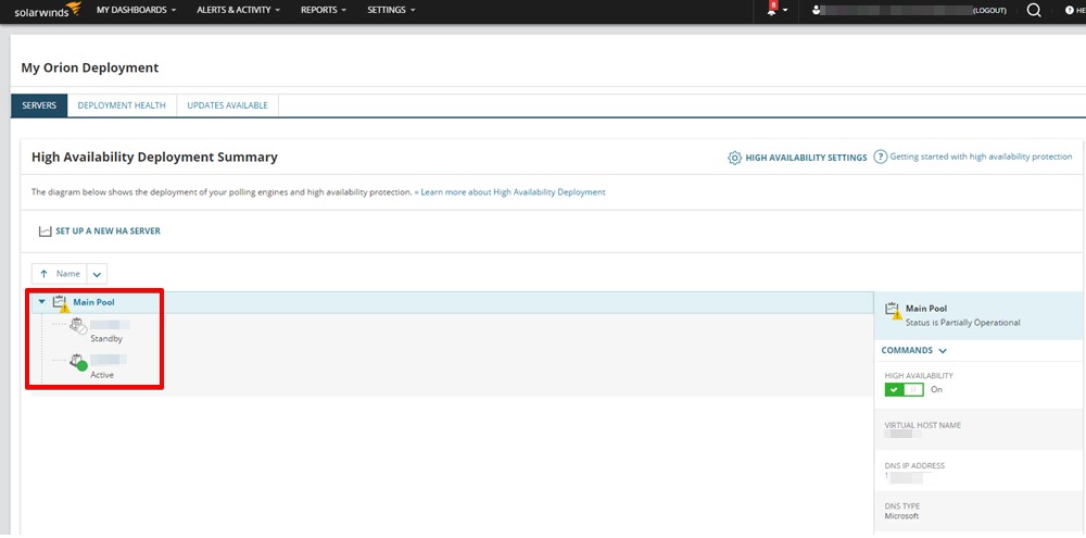 Once the steps above are completed, head to your SolarWinds web console and go to SETTINGS -> All Settings -> PRODUCT SPECIFIC SETTINGS -> High Availability Deployment Summary.