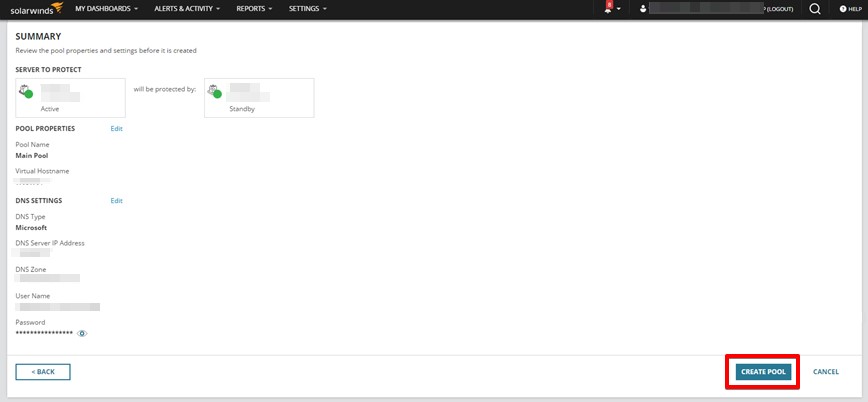 Once the pool is created, go ahead and review the High Availability Settings and Email Settings.
