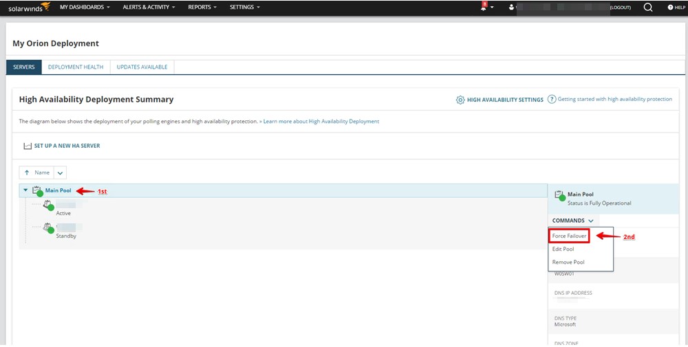 Suppose you want to initiate a manual failover, here are the steps to take right from the SolarWinds web console.